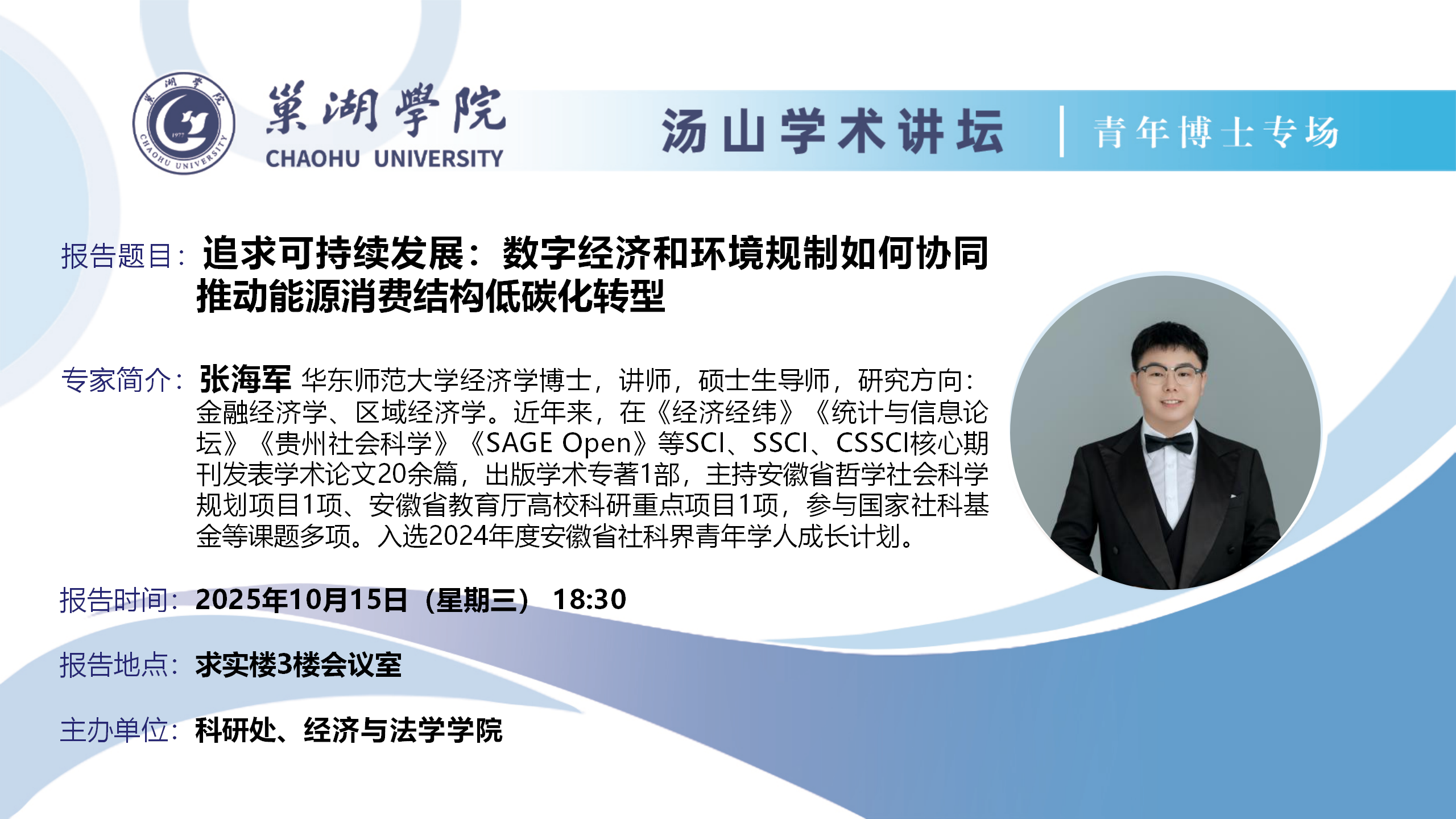 • 10月15日:巢湖學院經濟與法學學院講師張海軍講座